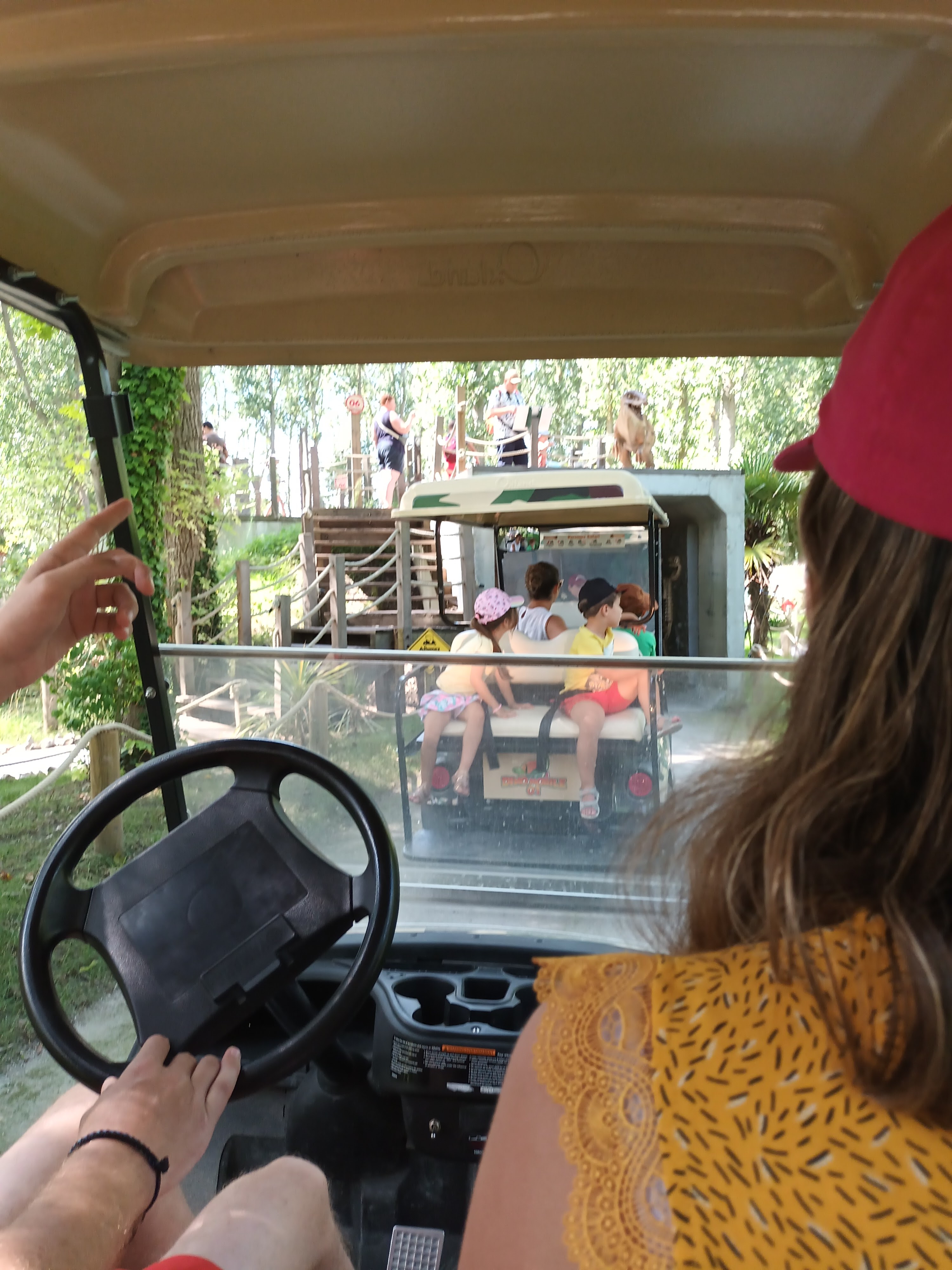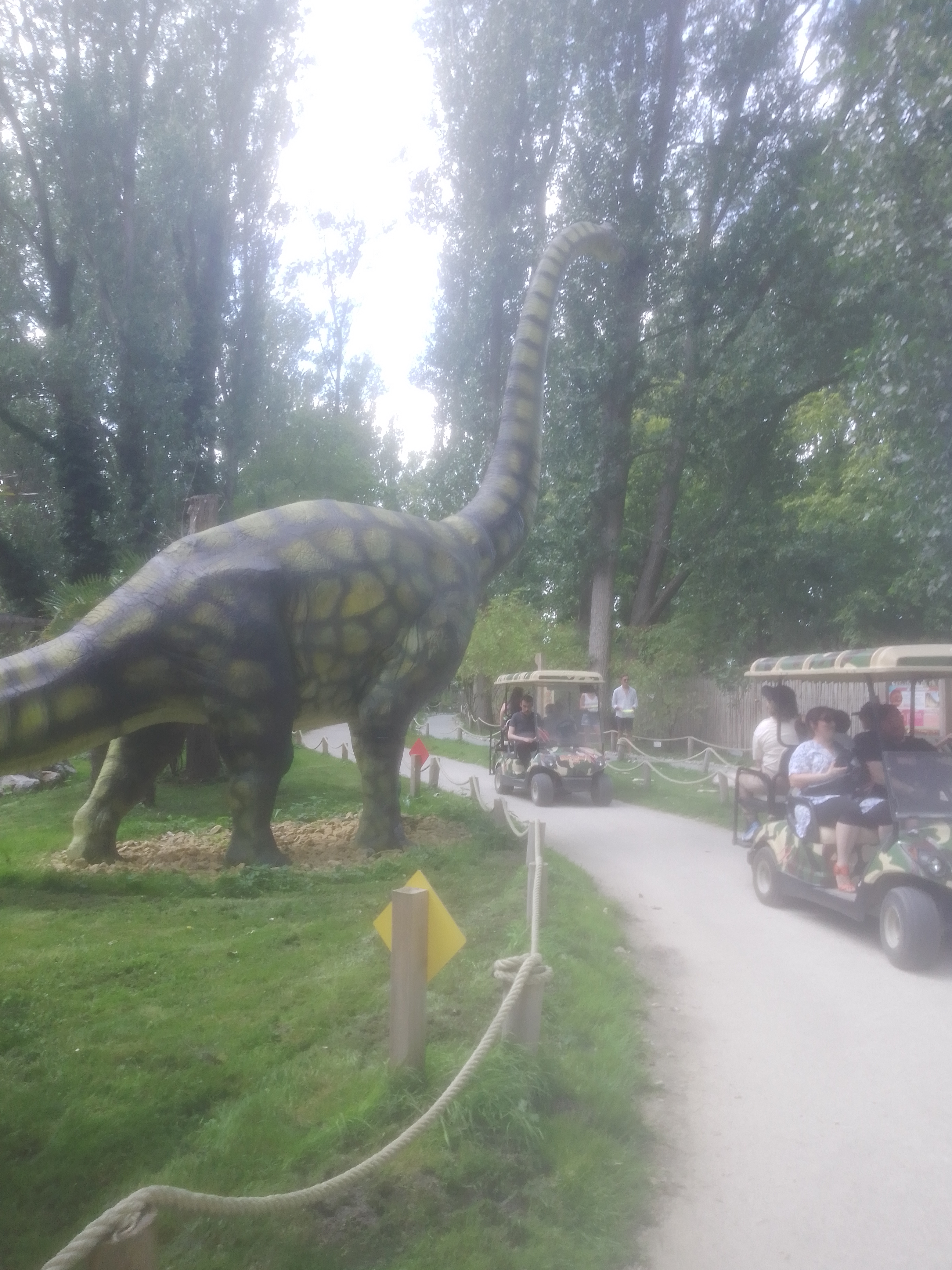 Parc plutôt agréable, rien d'extraordinaire. On entend des bruits de dinosaures à l'extérieur du parc mais quasiment rien une fois à l'intérieur. Dommage, quelques musiques ou sons pour nous mettre dans l'ambiance jurassic park seraient un plus. Il serait également judicieux de créer deux files d'attente, une pour le parcours à pieds et une pour les voiturettes. Après avoir attendu plus d'une heure pour payer l'entrée , la perspective d'attendre 45 min de plus pour la voiturette est assez décourageante. Gros point négatif : le parc n'est pas adapté pour les personnes à mobilité réduite ou les poussettes, dommage pour un parc destiné en majorité aux enfants... Les allées sont un peu étroites, on ne peut pas facilement doubler ou laisser passer les gens devant nous. Le jeu du golf/frisbee n'est pas au point (gênant avec le monde qui passe, on a un peu de mal à comprendre l'intérêt/ le rapport) il mériterait quelques ajustements. Le personnel était cependant très sympathique, surtout la dame du guichet, et la visite est restée agréable malgré tout.