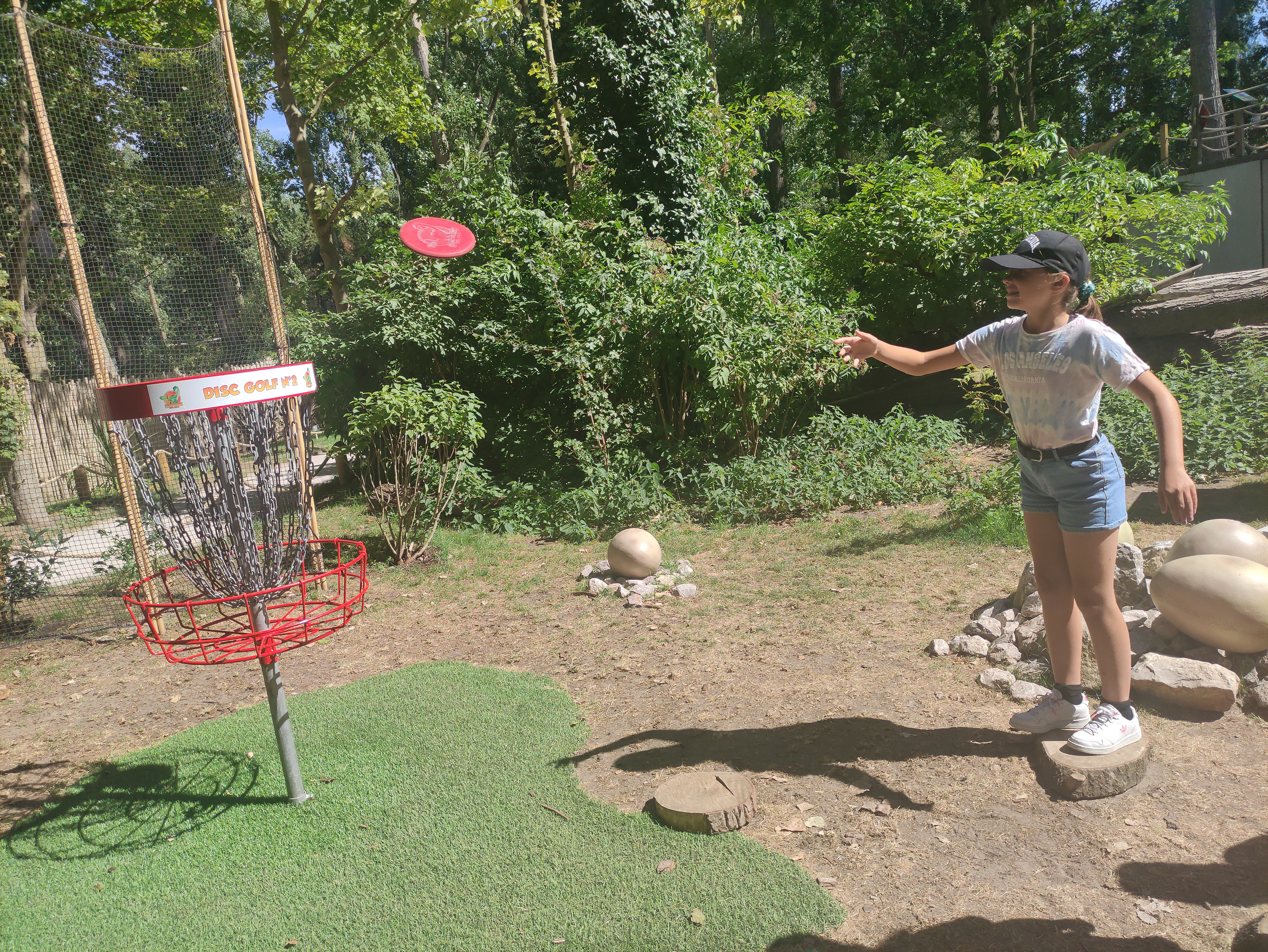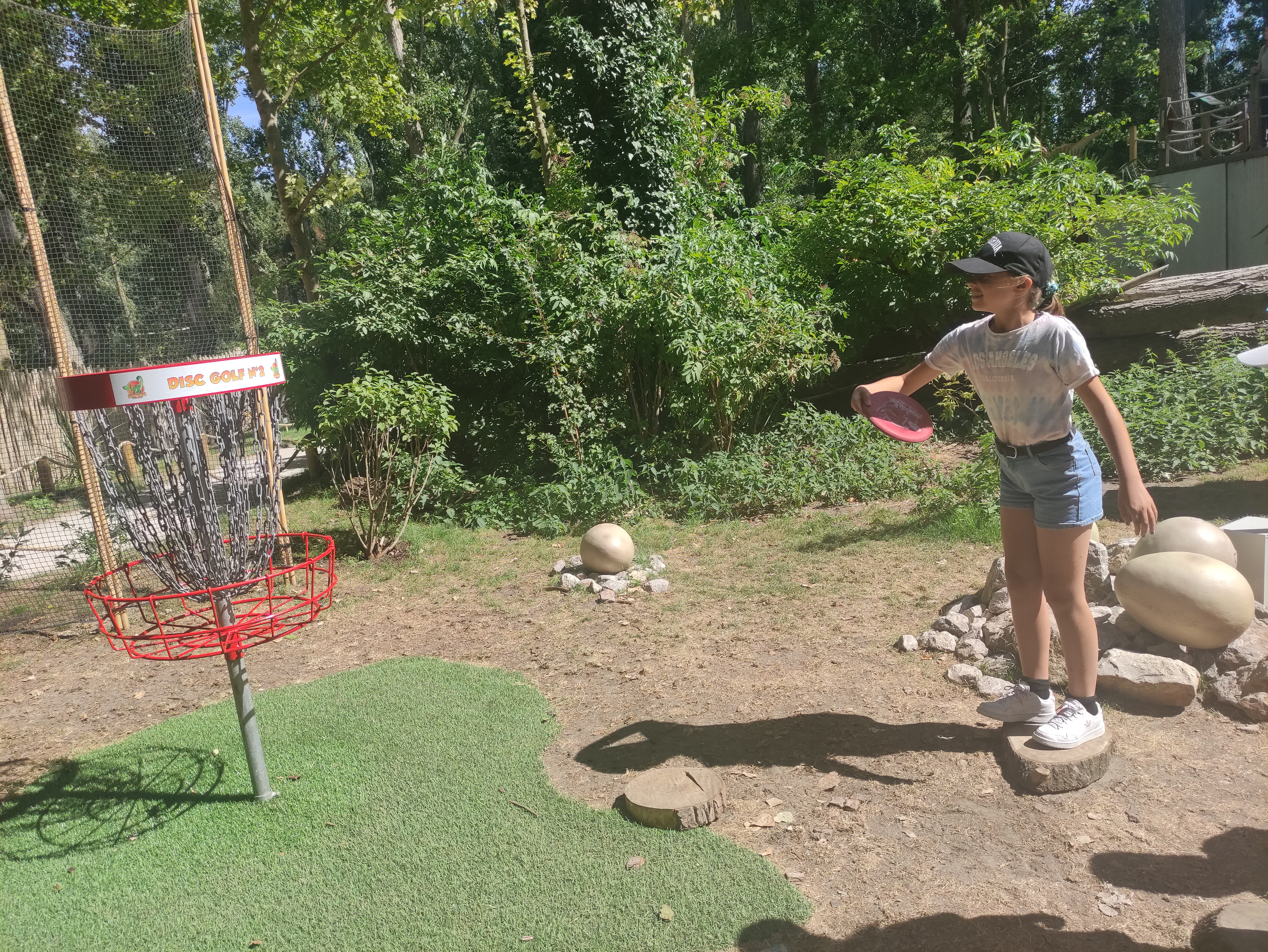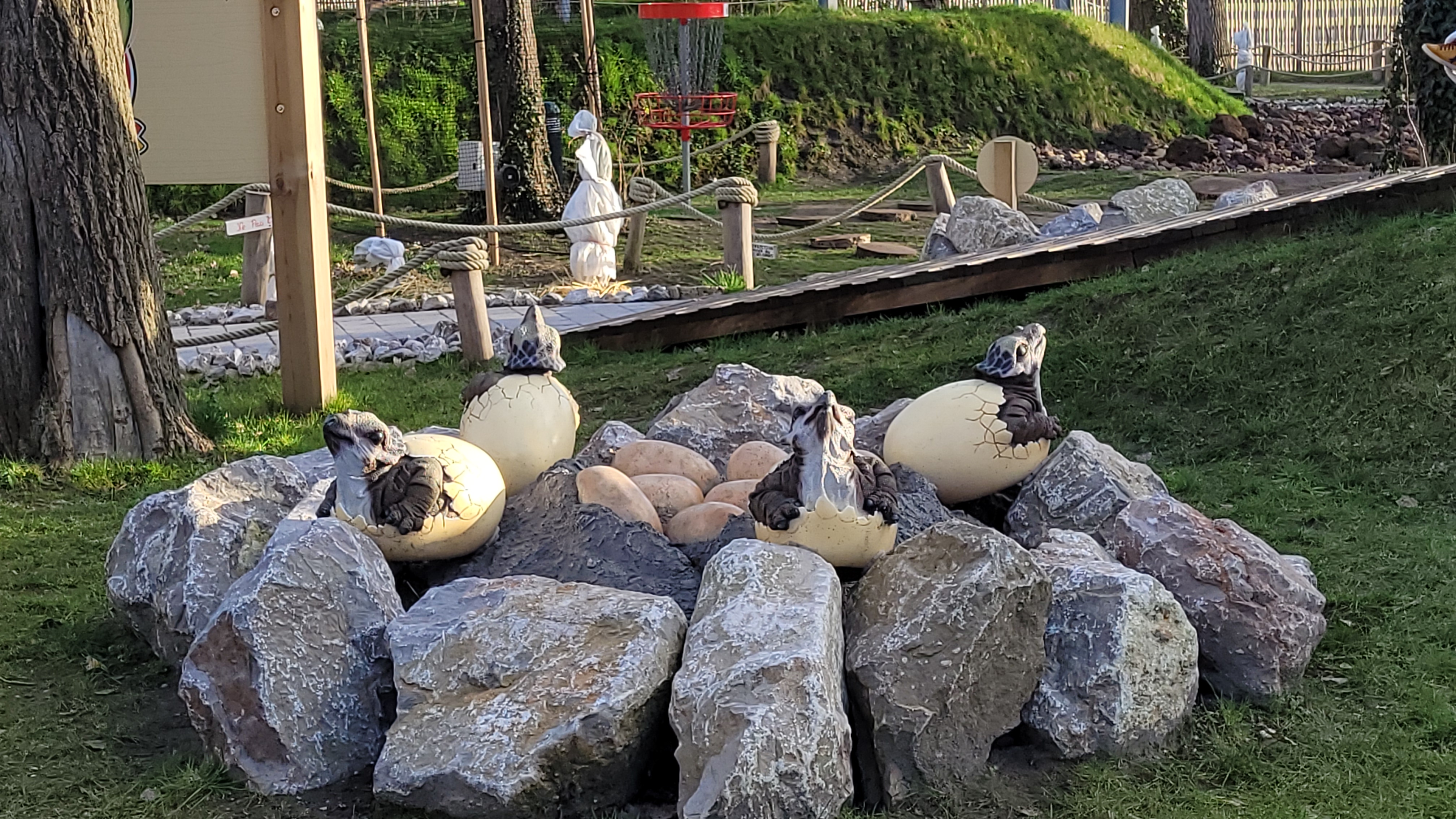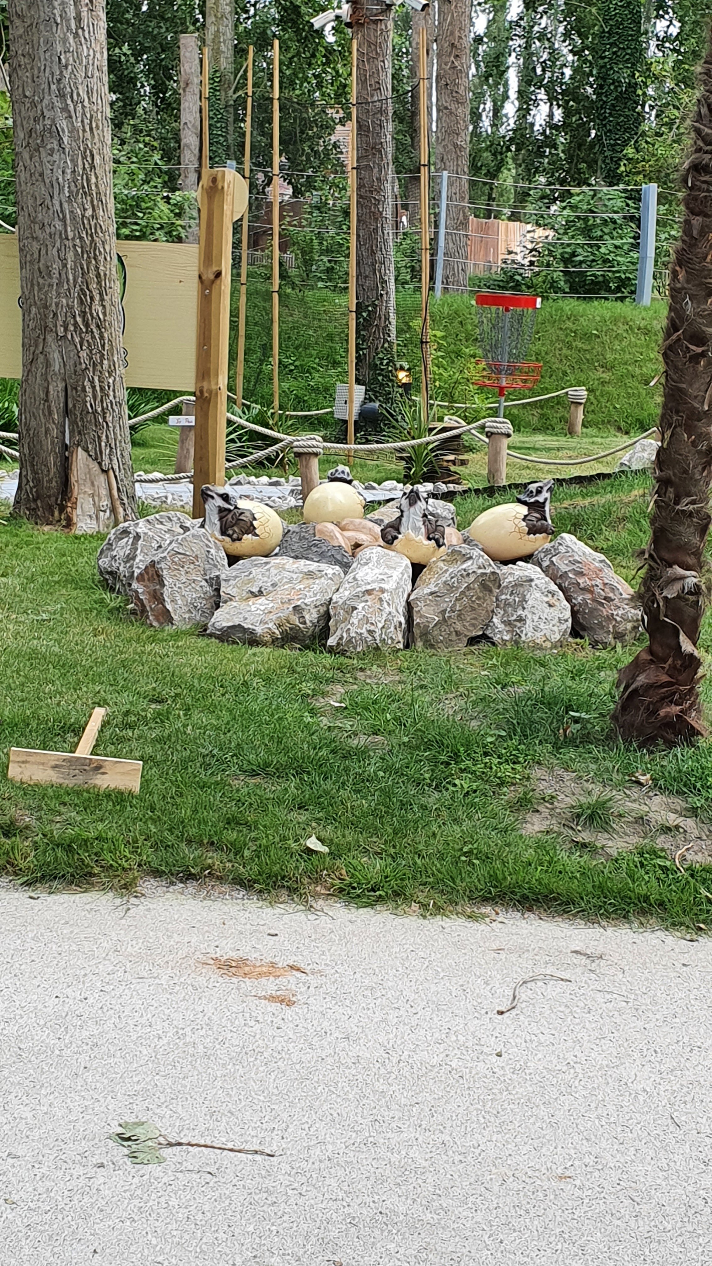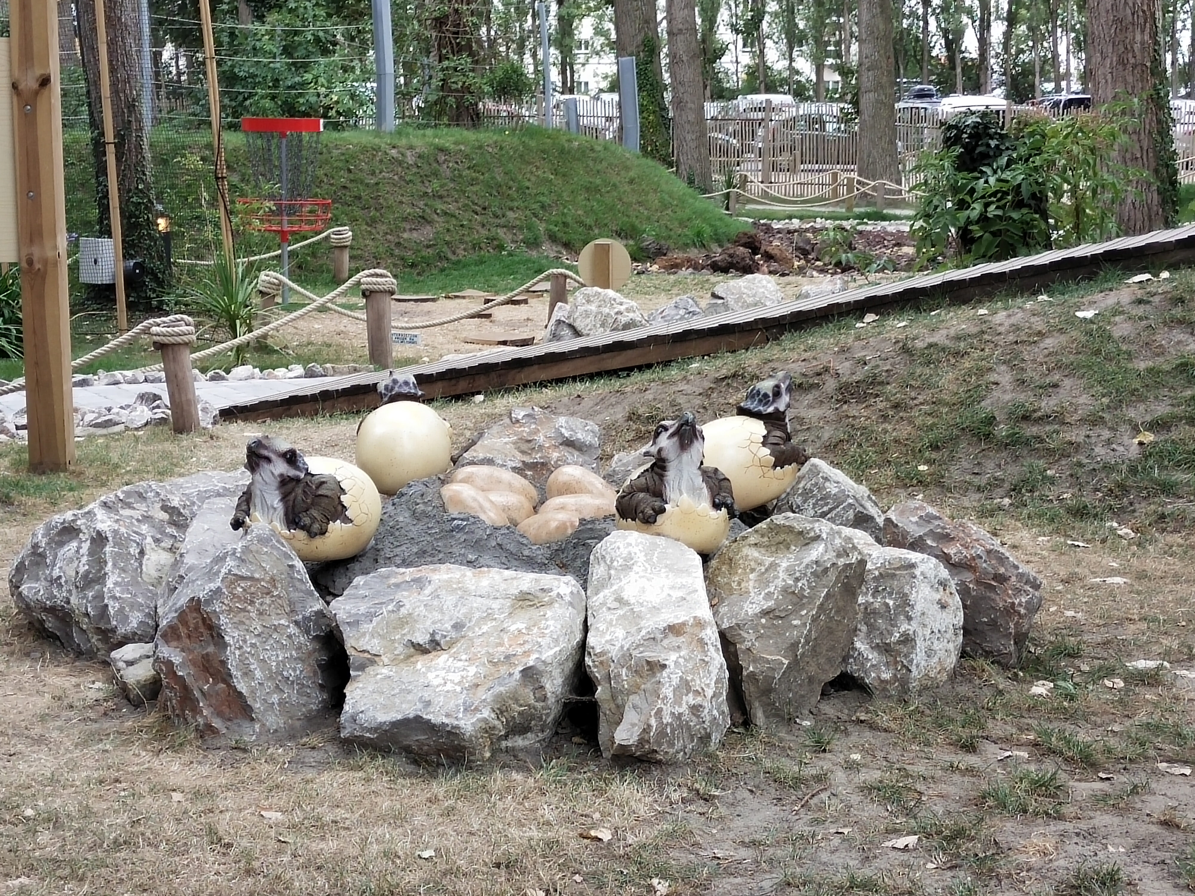 Personnel sympa, dinosaures et explications Top, mais promenade et disc golf sur le MÊME parcours donc gênant pour tout le monde...! Concept à revoir...!