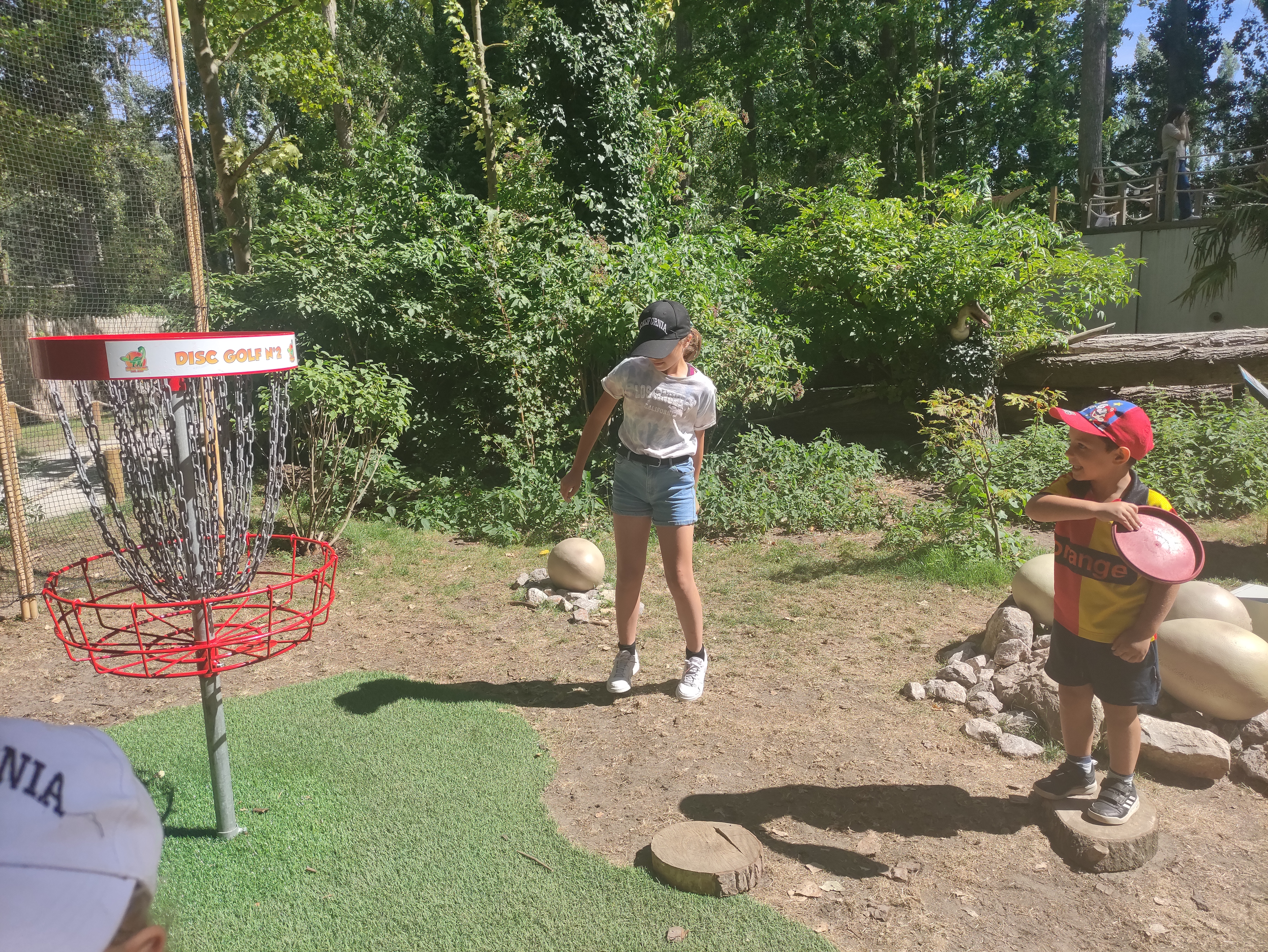 Je n'ai pas trouvé le parcours super réfléchi. Ce n'est pas facile de jouer entre les personnes qui se promènent et les joueurs notamment au niveau des escaliers. Il serait judicieux d'expliquer les règles lors de la remise des fiches pour tenir le score et de mieux montrer les parcours (ce n'est pas toujours évident de s'y retrouver). Les petits rondins de bois sont déjà soit cassés soit instables. Le parcours avec le volcan est dangereux car le chemin entre le lancer et le green n'est pas sécurisée. Mon fils a glissé et s'est écorché le genou. Le décors est très beau ! Nous avons pris quelques photos sympathiques.