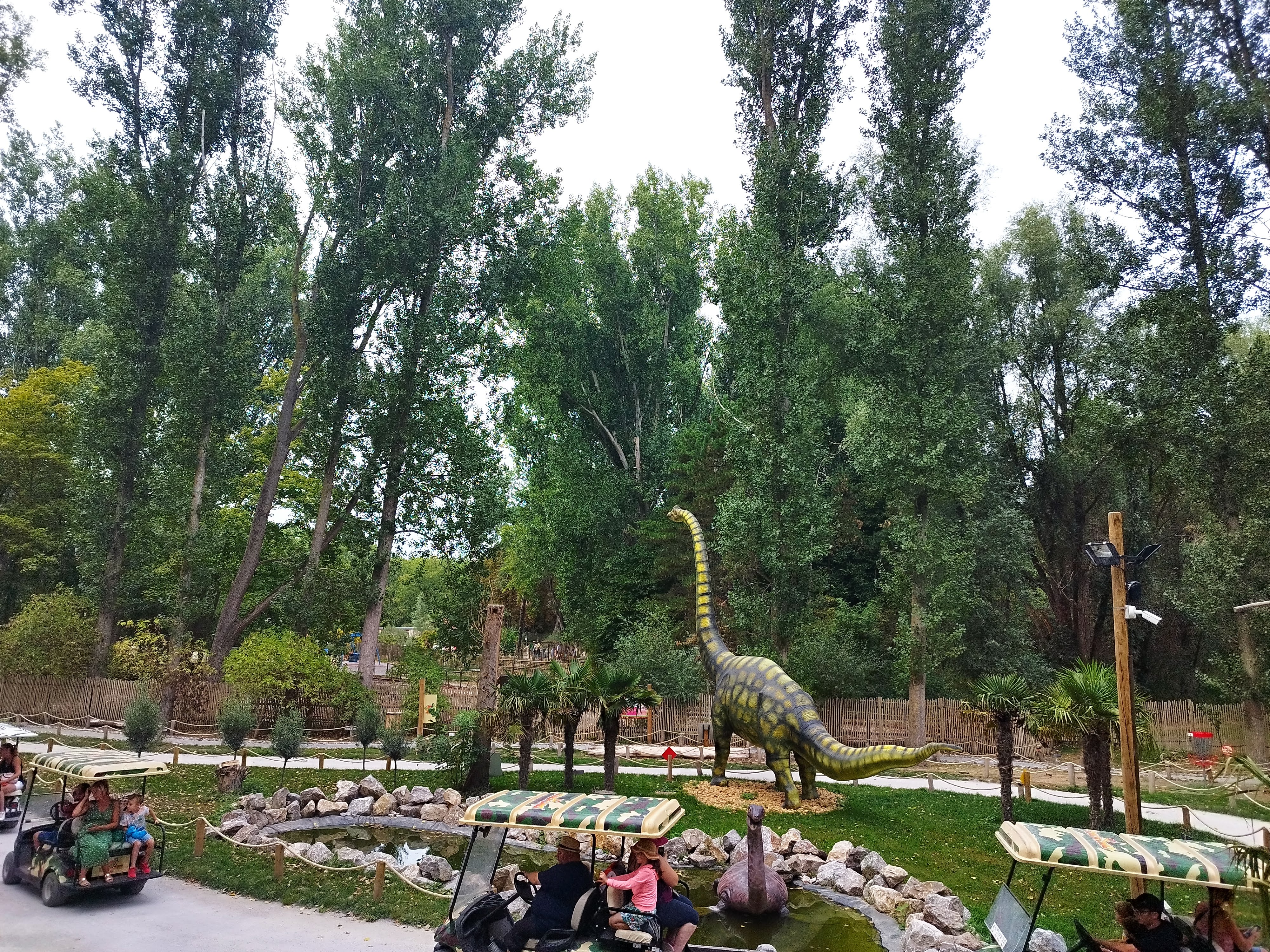 3 heures d'attentes, une seule caisse, pas d'adaptation des responsable, au vu de l'affluence , les pauvres employés qui se prennent toutes les remarques et les remontrances (ce n'est pas leur faute). Certaines choses réservé seulement au parcours voiturettes et des dinosaures tourné vers ce parcours (Nous avons voulu jetter un œil dans la grande tante, on sait fait rembarrer par un responsable). Je ne vois pas l'intérêt du disque goal dans un parc comme ça. On vient pour les dinosaures. L'atmosphère pourrait être encore plus pousser aventure, temps des dinosaures,... . On peut voir une grande partie des dinosaures de l'extérieur du parc.
