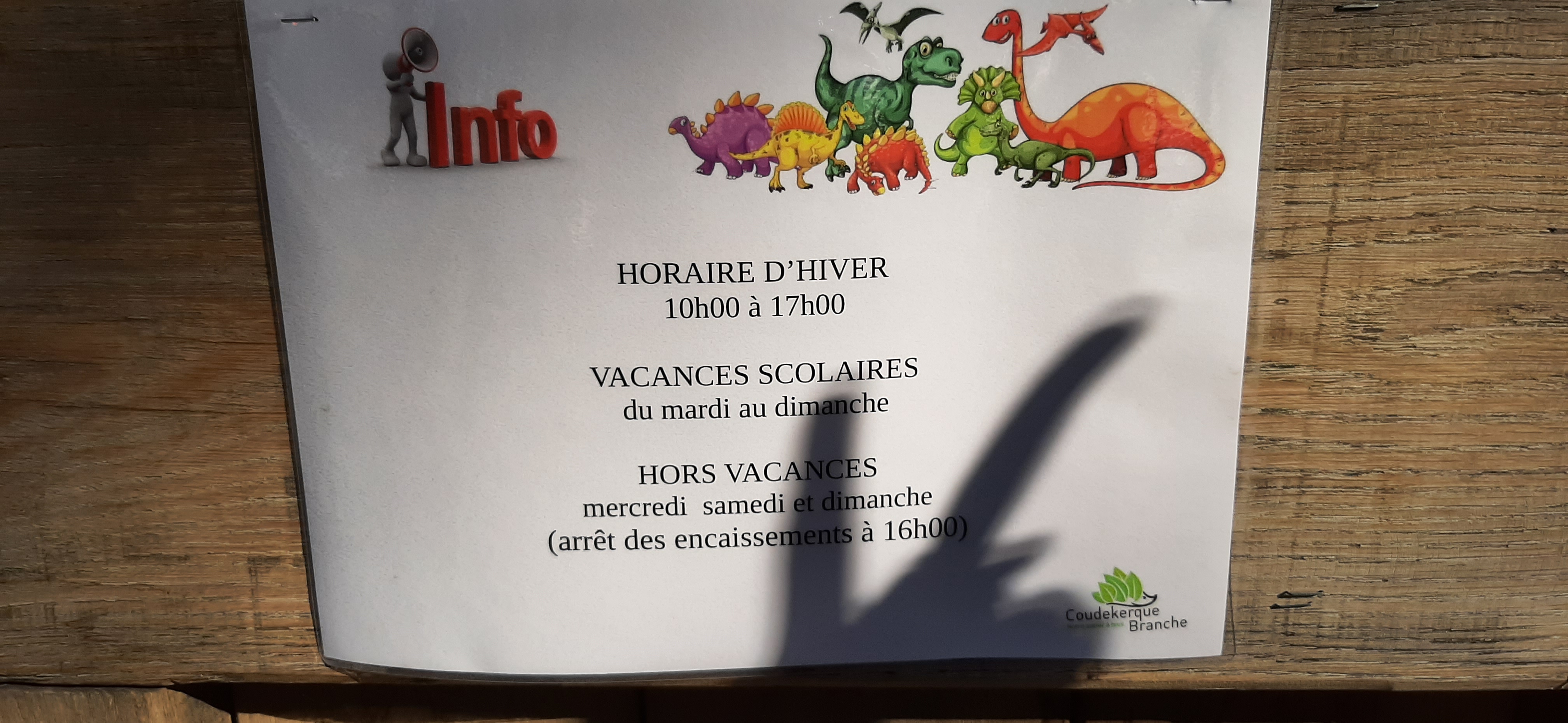 Il serait bon de mettre vos horaires à jour sur internet, nous étions ce jour samedi 24 septembre à 14h30, une vingtaine de personnes dont enfants devant votre Dino parc, des personnes ayant fait 1h30 de route aussi , je trouve ça inadmissible.