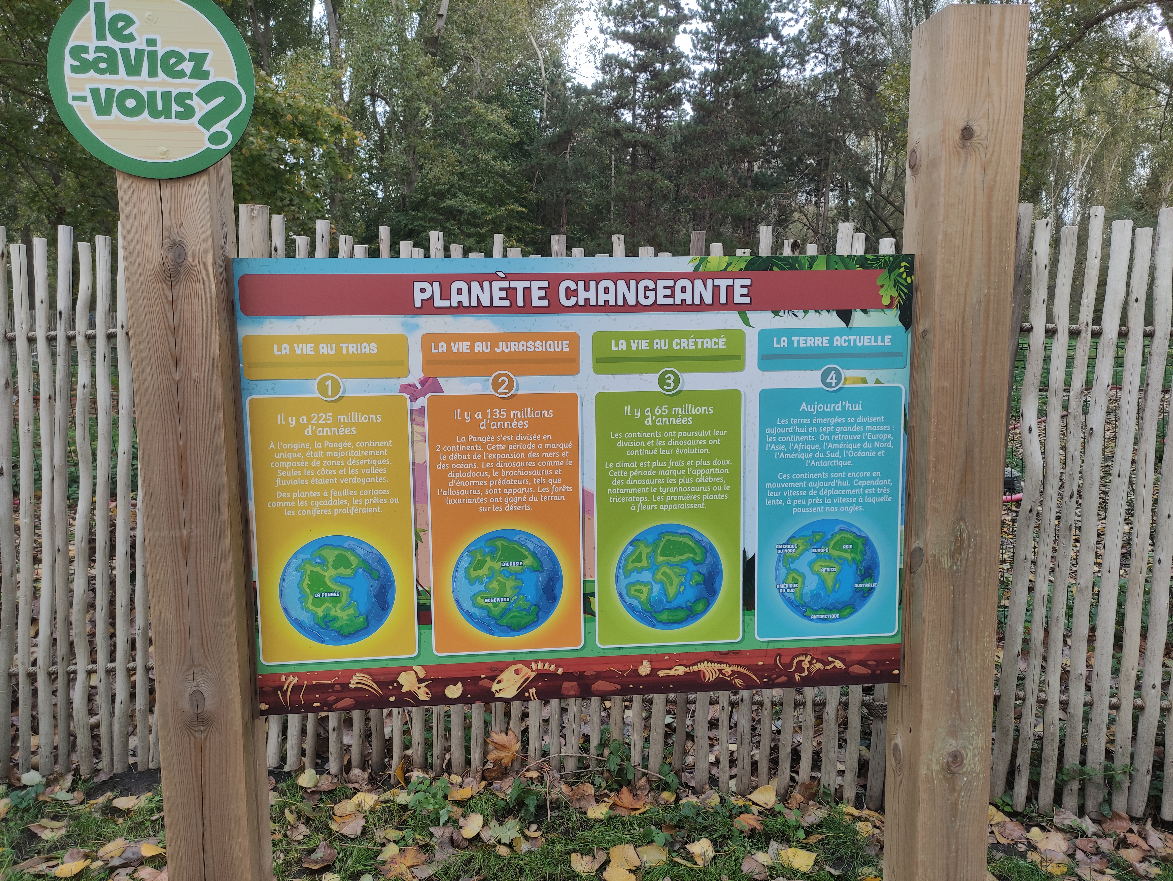 Nous avons fait le circuit disco.golf qui permet de cumuler le circuit didactique et le jeu et qui permet de garder l'attention des enfants. Pas de queue mais il était 13h45 .tarif accessible 5€, 3€ moins de 12 ans, gratuit moins de 5 ans.Reproductions de qualité . S'integre parfaitement dans le reste du parc.vaut le détour.